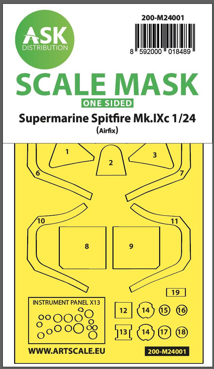 Art Scale 1/24 Art Scale Spitfire Mk.IX one-sided express self-adhesive masks for Airfix