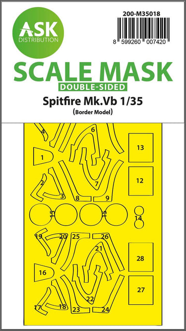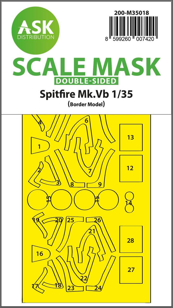 1/35 Spitfire Mk.Vb double-sided express fit mask for Border Model kit. Cataloque number 200-M35018