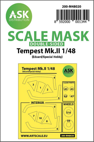 Art Scale 1/48 Art Scale Hawker Tempest Mk.II double-sided painting mask for Eduard / Special Hobby