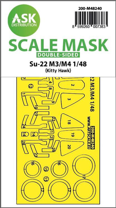 1/48 Su-22M3/M4 double-sided self adhesive fit masks for clear parts for Kitty Hawk. Cataloque number 200-M48240
