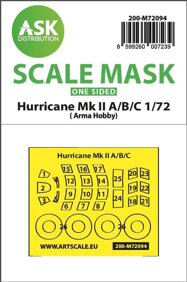 Art Scale 1/72 Art Scale Hawker Hurricane Mk.II A/B/C one-sided fit express mask for Arma Hobby