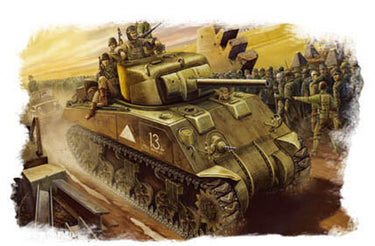 The M4 medium with a welded hull and Whirlwind radial aircraft engine was the third type of the series to put into production. As the war dragged on, numerous changes were made to the M4, the changes of the final drive housing, the heavy VVSS suspension system, different kinds of road wheels, added- on armor but the 75mm main gun and the 56 degree glacis plates remains un-changed. Until a final version of hull combining a cast front and a welded rear! The kit contains the open spoke road wheels with details down to the tiny grease plug, the appliqué armors and both the early M34 gun mount and the M 34A 1 combination gun mount.