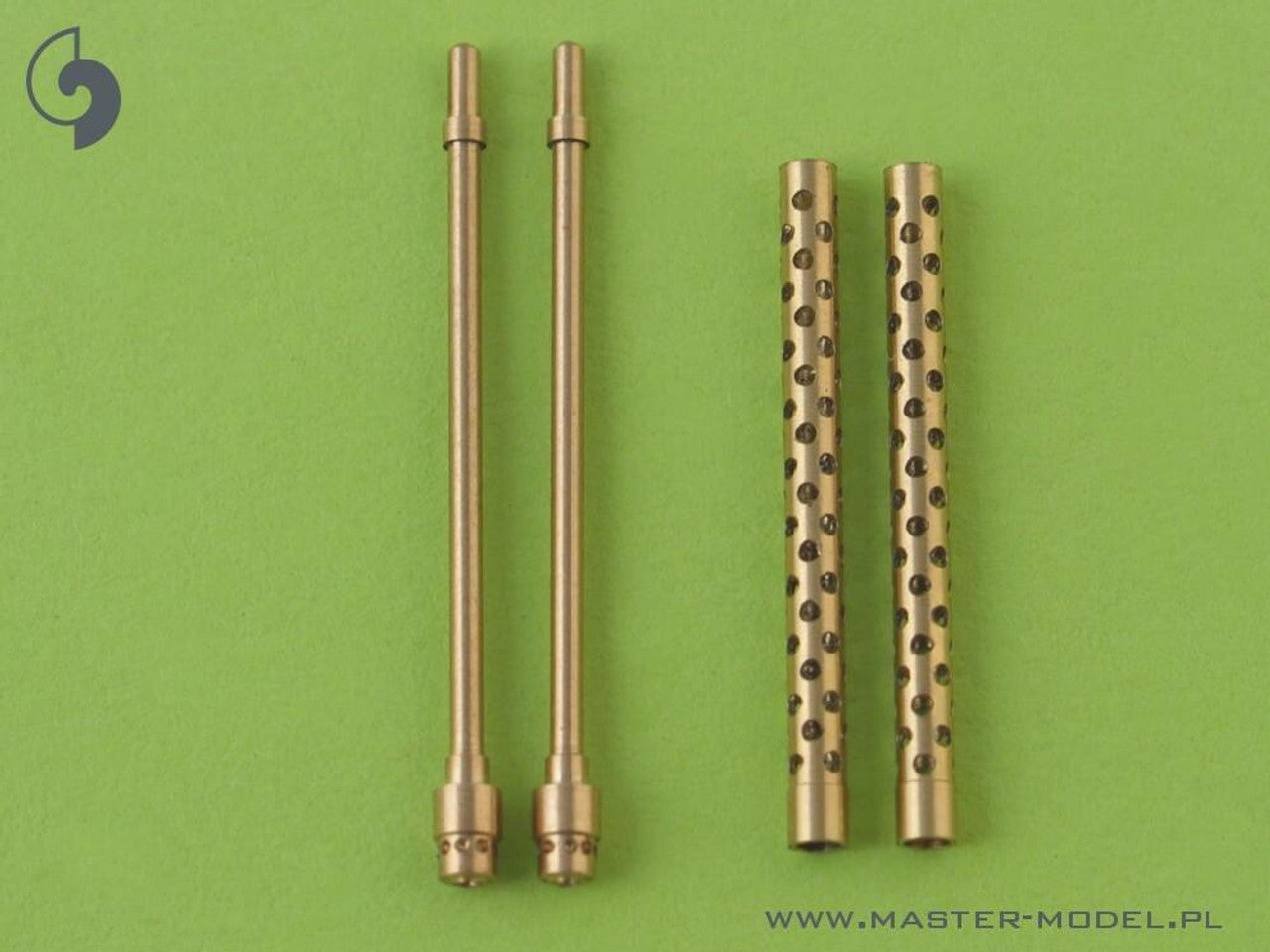 Used in many fighters and bombers The set includes two turned brass barrels with drilled cooling jacket. It is very simple to use in Your model, and makes it extremely realistic. Simply cut off the original plastic barrel and drill a hole in the remaining plastic parts and insert the metal barrel using Cyanoacrylate adhesives.