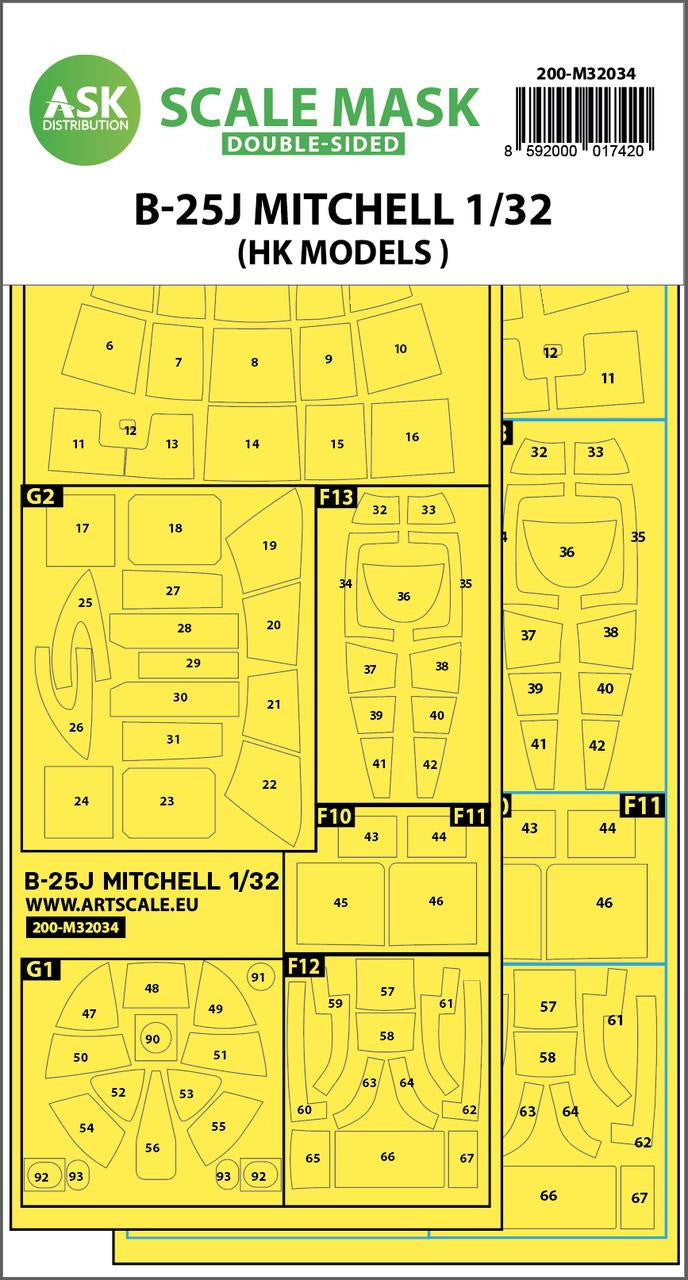 1/32 Art Scale B-25J Mitchell double-sided mask for HK Models
