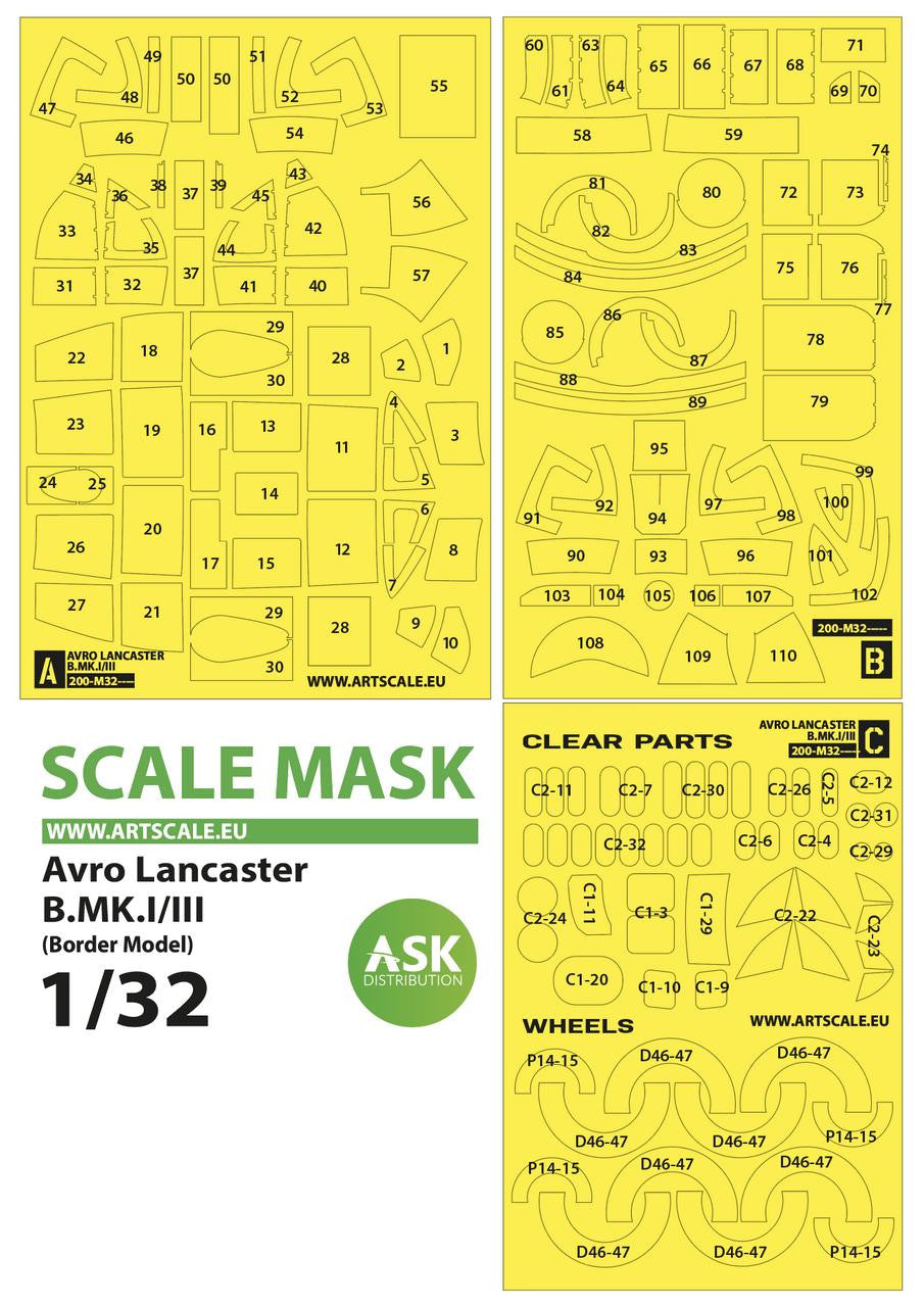 Art Scale 1/32 Art Scale Avro Lancaster B Mk.I/III express self adhesive masks for Border Model