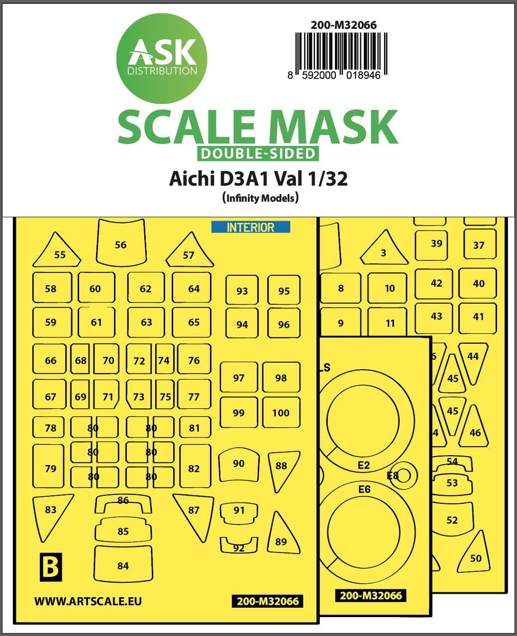 1/32 Aichi D3A1 Val double-sided express mask for Infinity kit. Catalog no. 200-M32066Excellent quality, the best technological production of the foil cross-section, mask with printed part numbers together with the instructions clearly defines the parts of the mask and their specific location and application.