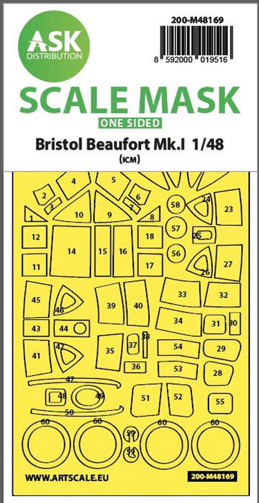 Art Scale 1/48 Art Scale Bristol Beaufort Mk.I one-sided express fit mask for ICM