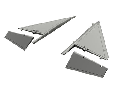 All new canard foreplanes with separate flaps and a set of two vortex generators. No adjustment of the original kit is required. These new parts correct the most important issue of the model which is the foreplane flaps shape and also enable the modeller to drop the flaps at 30°, a characteristic feature for a Viggen with the undercarriage down. Intended for the second generation Viggens, the lenghtened JA-37 version.