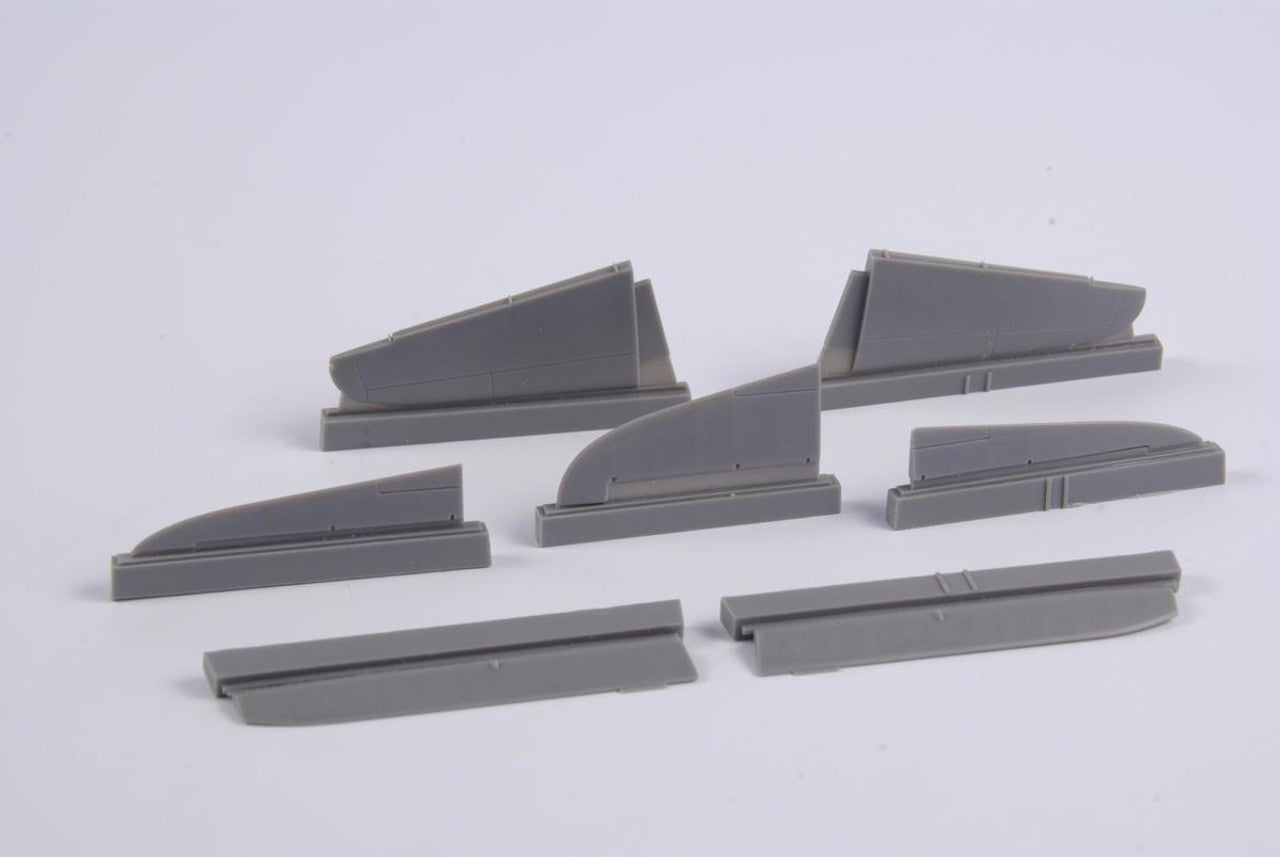 Contains new control surfaces (ailerons, rudder, tailplanes and elevators) with life like rendition of their fabric skinning. The control surfaces can be fixed in the deployed position.
