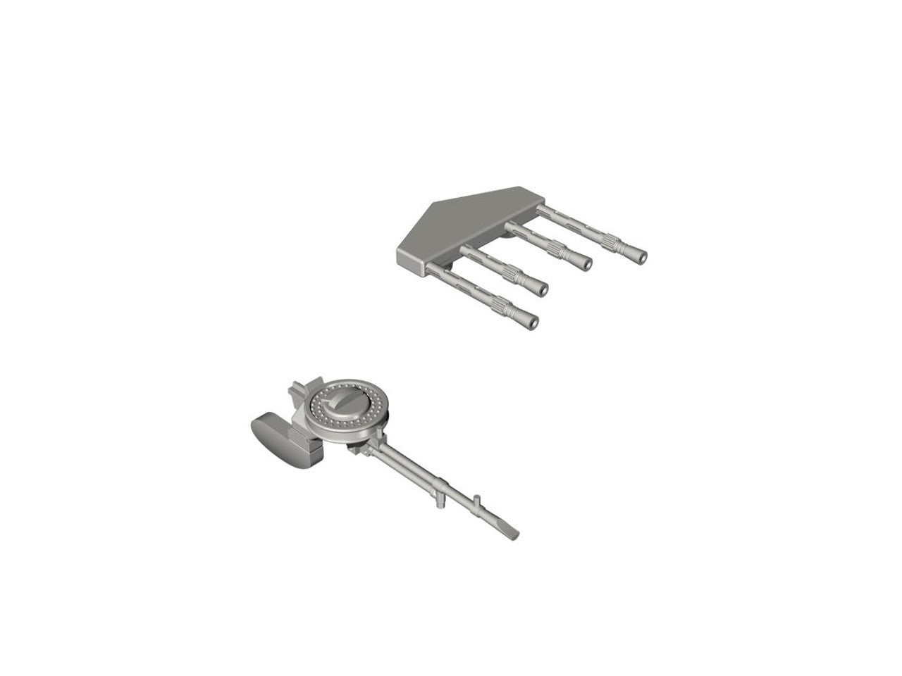 Detailed resin cast fixed machine guns as fitted to the ventral gun pod and a fixed machine gun directly replace the original parts in the kit and offer substantially higher levels of detail. Designed for Airfix kit.