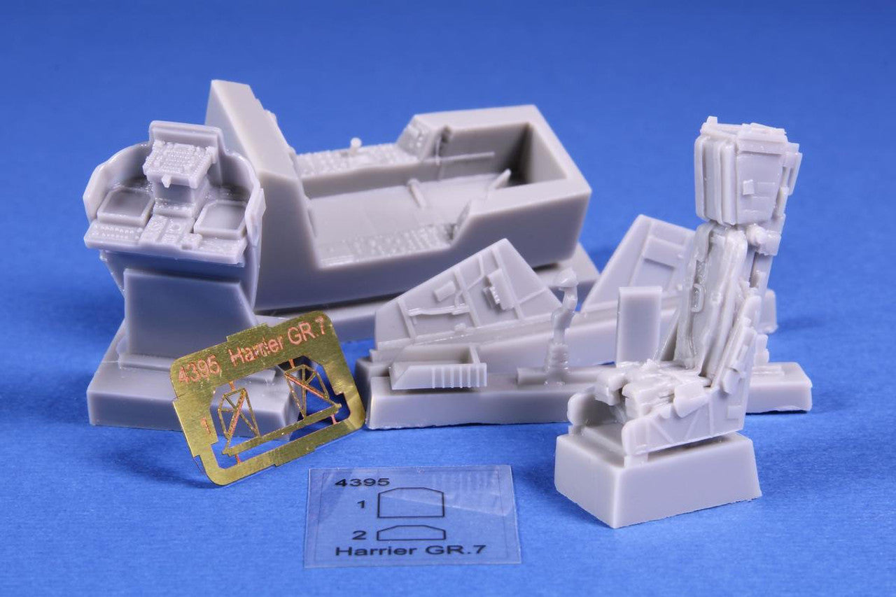 This set offers a new, detailed resin cast interior made for the Hasegawa’s Harrier GR.7. The new parts are a direct replacement for the kit’s less-detailed item
