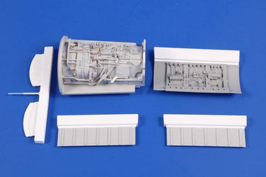 Another one of the F-104 sets for the Kinetic model offers the open engine bay as found in the lower mid fuselage. When in open position, the ground crew can check maintain the powerplant. The set consists of only a handful of rather large, but nicely detailed resin items.
