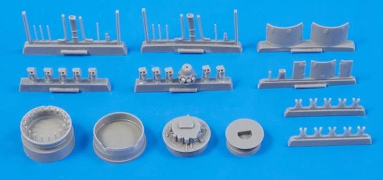 Detailed resin set portraying the Blenheim engine, meant to fit the new Airfix model. As the right-hand and left-hand side engine installations are identical, it is up to the modeller which side he wishes to use the set for. The set comes with detailed resin cast engine and its components, engine bearers, air intakes, bulkhead, cowling panels with reinforcements on their inside and also with the typical cowling nose ring designed one-piece with the exhaust tubes.