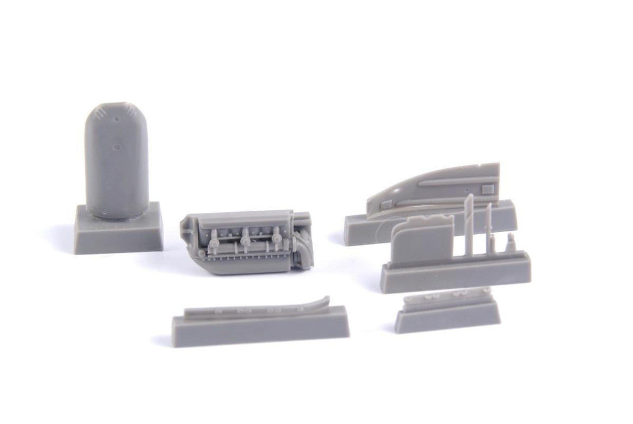 The set offers the modeller an option to open the port side engine cowling panel and show to good advantage the visible section of the engine. The set consists of a partial engine replica, engine bulkhead and the respective cowling panels and so the installation into the model is quite easy and straightforward and the sleek profile of the machine does not get disrupted.