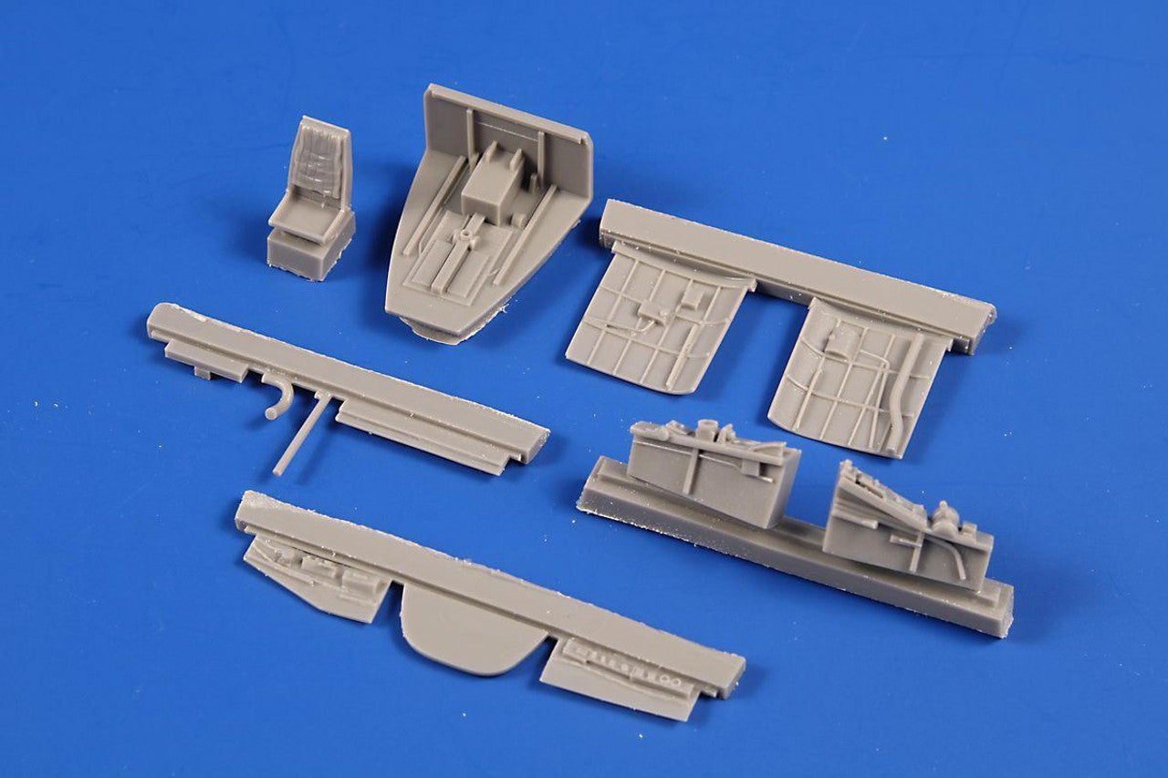The set is meant to be used with the latest Airfix kit and completely replaces the styrene cockpit parts, including the formers and stringers behind the pilot’s office. The resin cast parts joined offer much nicer details and are joined with a fret of photo etches (instrument panel, seat belts, control column handweel and some more) for even greater effect.