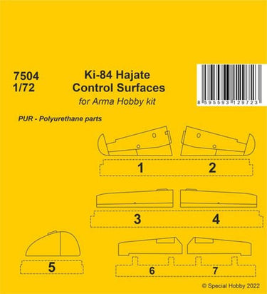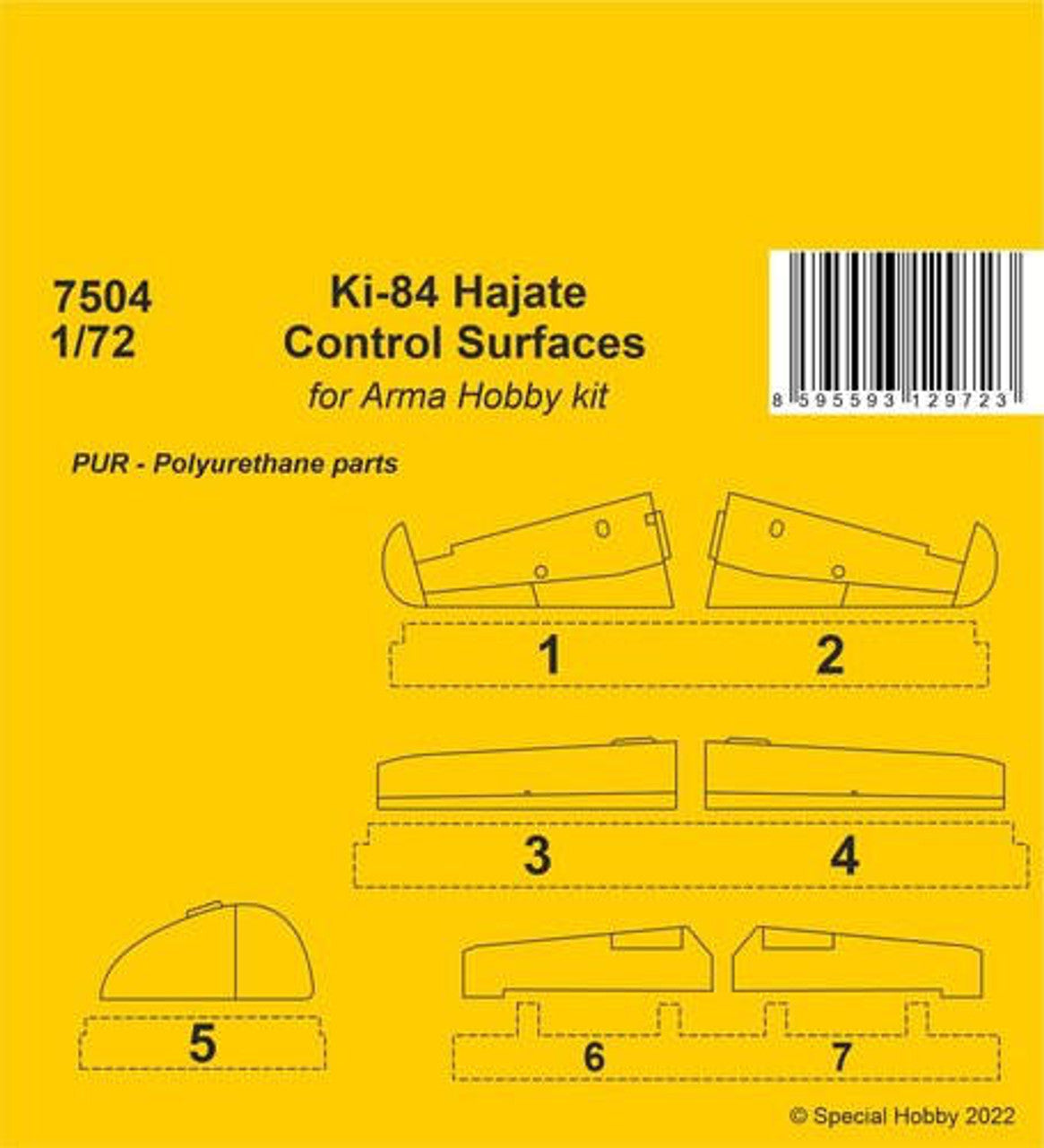Detail resin cast control surfaces set for the new Arma Hobby’s Ki-84 Hayate model. The parts can be posed deployed.