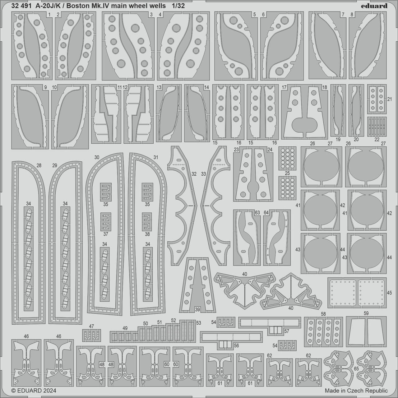 Home Eduard 1/32 Eduard A-20J/K / Boston Mk.IV main wheel well Photo etched set