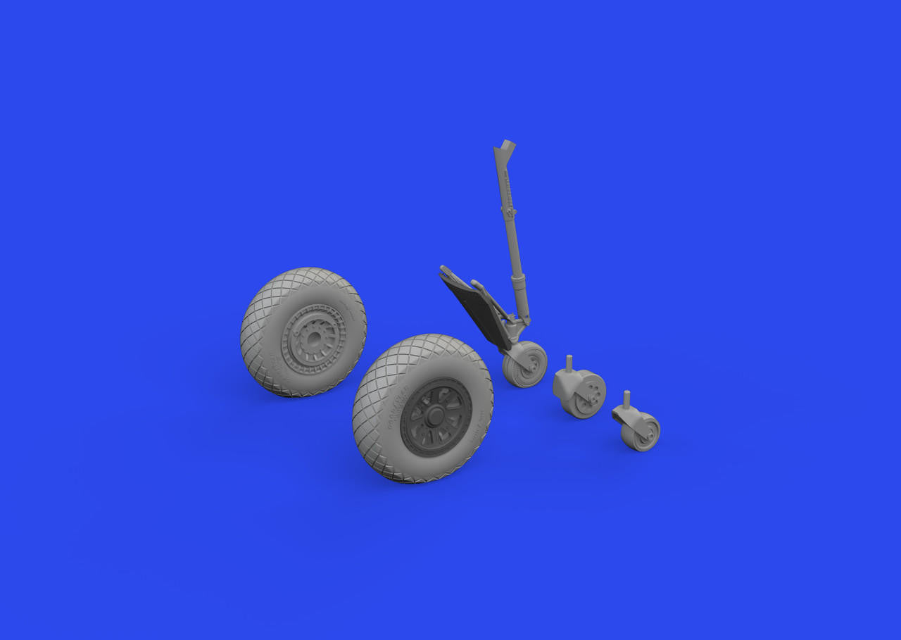 Brassin set the undercarriage wheels for TBF/TBM in 1/48 scale.The set consists of the main wheels and a tail wheel.Easy to assemble, replaces plastic parts.