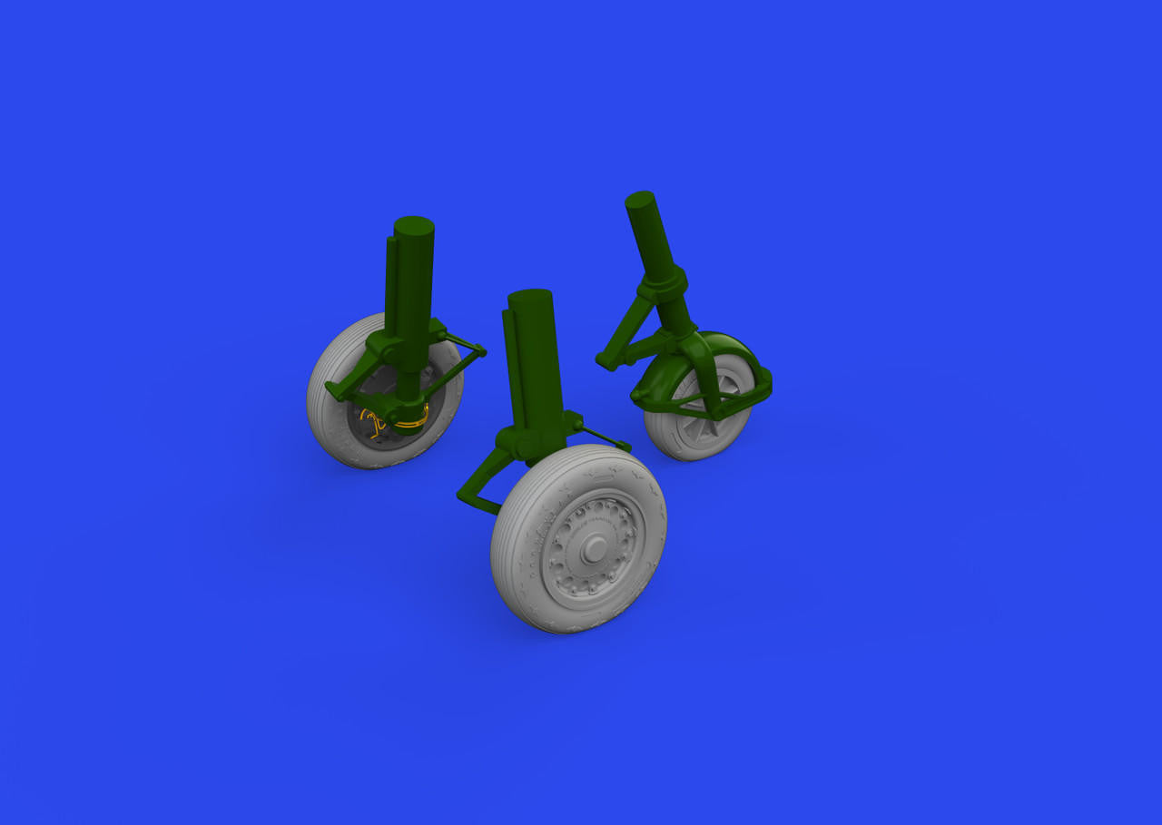 Brassin set the undercarriage wheels for J-35 Draken in 1/48 scale.      The set consists of the main wheels and a nose wheel.      Easy to assemble, replaces plastic parts.
