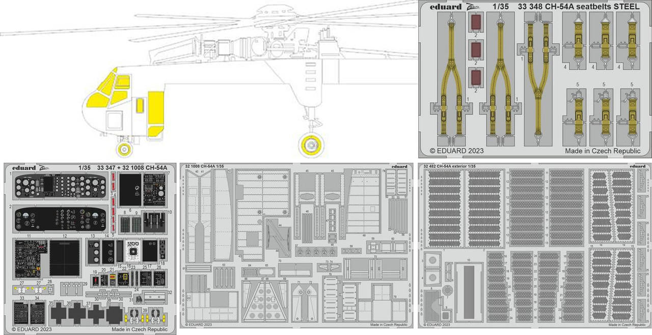 Collection of 4 individual sets for CH-54A in 1/35 scale.Recommended kit: ICM