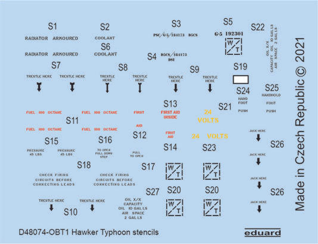 Eduard 1/48 Eduard Decal Hawker Typhoon stencils for Hasegawa
