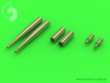 Used in Supermarine Spitfire with early E wing (conical fairings).The set includes turned brass barrels.