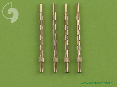 Set includes four turned brass barrels with sloted cooling jacket. It is very simple to use in Your model, and makes it extremely realistic. Simply cut off the original plastic barrel and drill a hole in the remaining plastic parts and insert the metal barrel using Cyanoacrylate adhesives.