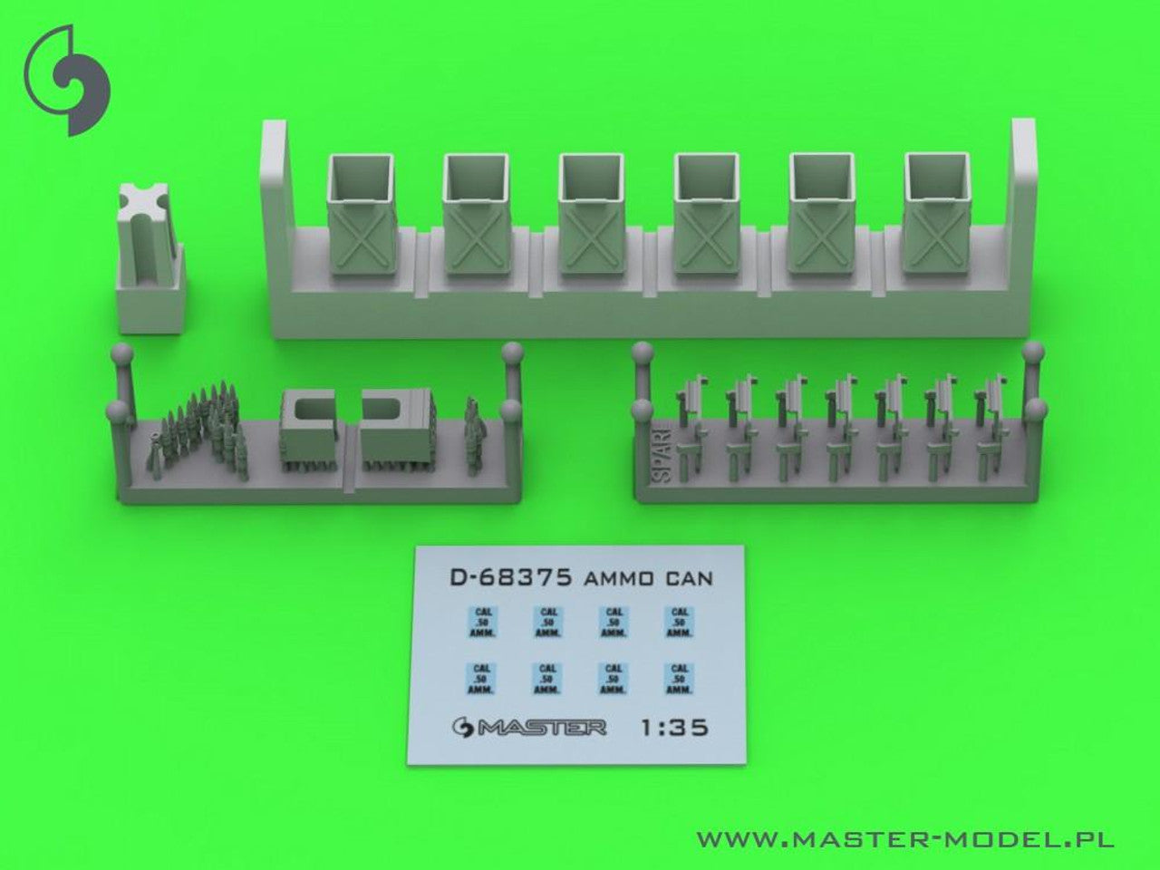 The set includes casted and 3D printed resin parts for opened 50 round (D68375) ammo cans.