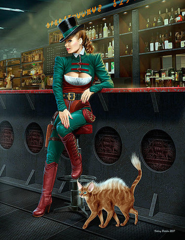 1/24 Master Box At the Edge of the Universe Female Grifter Fancy Dressed Sitting on Stool Leaning on Bar Section