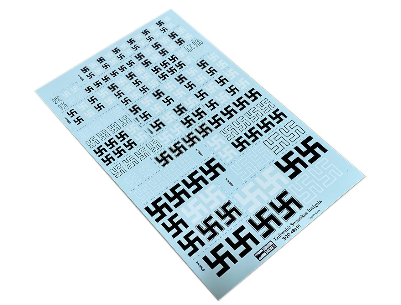 This decal set includes erman Luftwaffe Swastikas Insignia in various sizes for 1/48 scale aircraft.