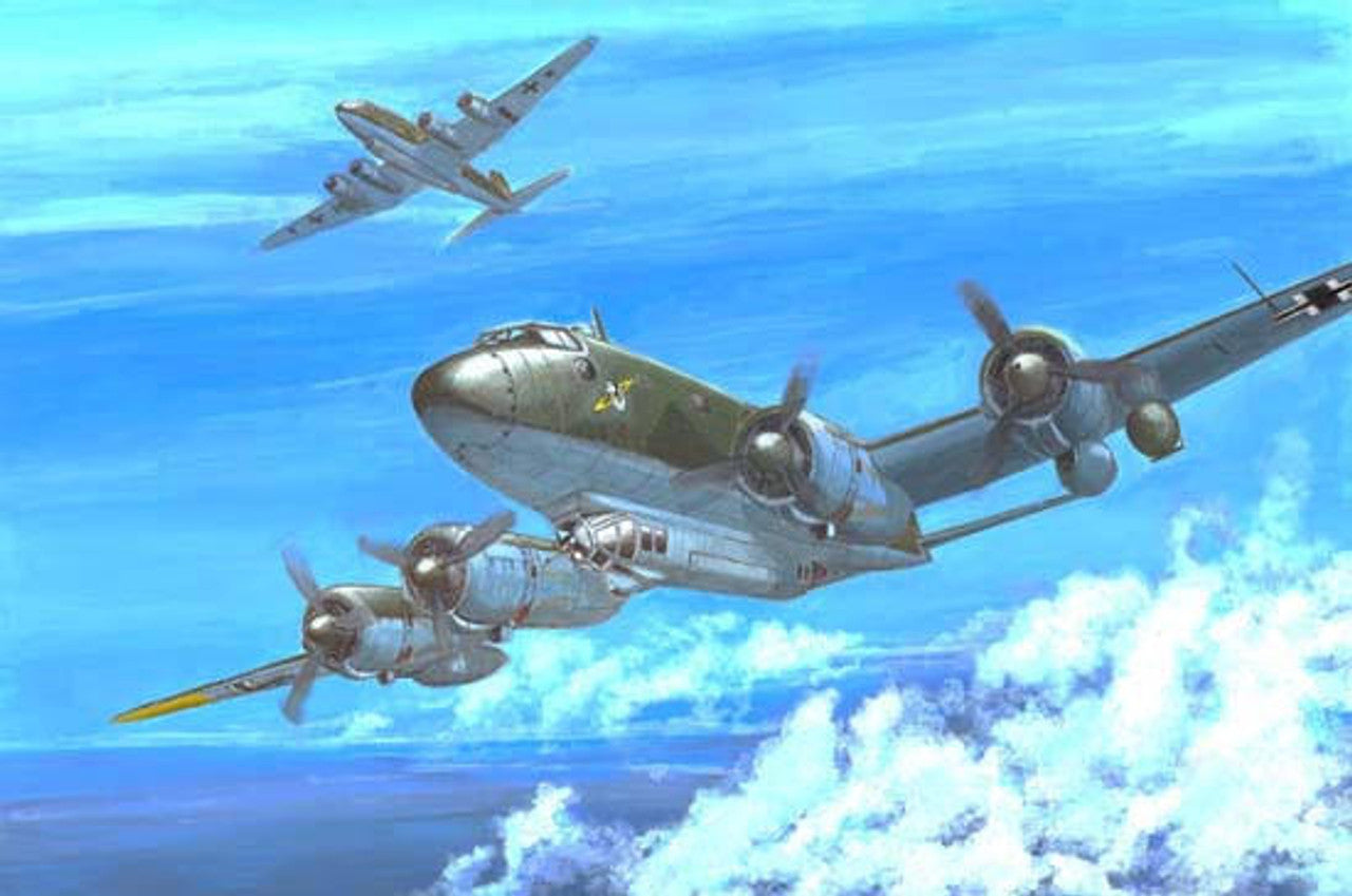 The Focke-Wulf Fw 200 Condor was designed by Dr.Kurt Tank as the response to the Douglas DC3.This all-metal four-engine aircraft was designed to carry 25 passengers and have the range to 3000km.The aircraft took the first flight in July 1937.After the outbreak of the World War II,the Condor was remodeled to the military aircraft as the transport,the bomber and the reconnaissance under the request of the Air force.The fuselage was strengthened and the wings became longer for the bombs,the inside of the aircraft was lager and the few of machine guns was added.